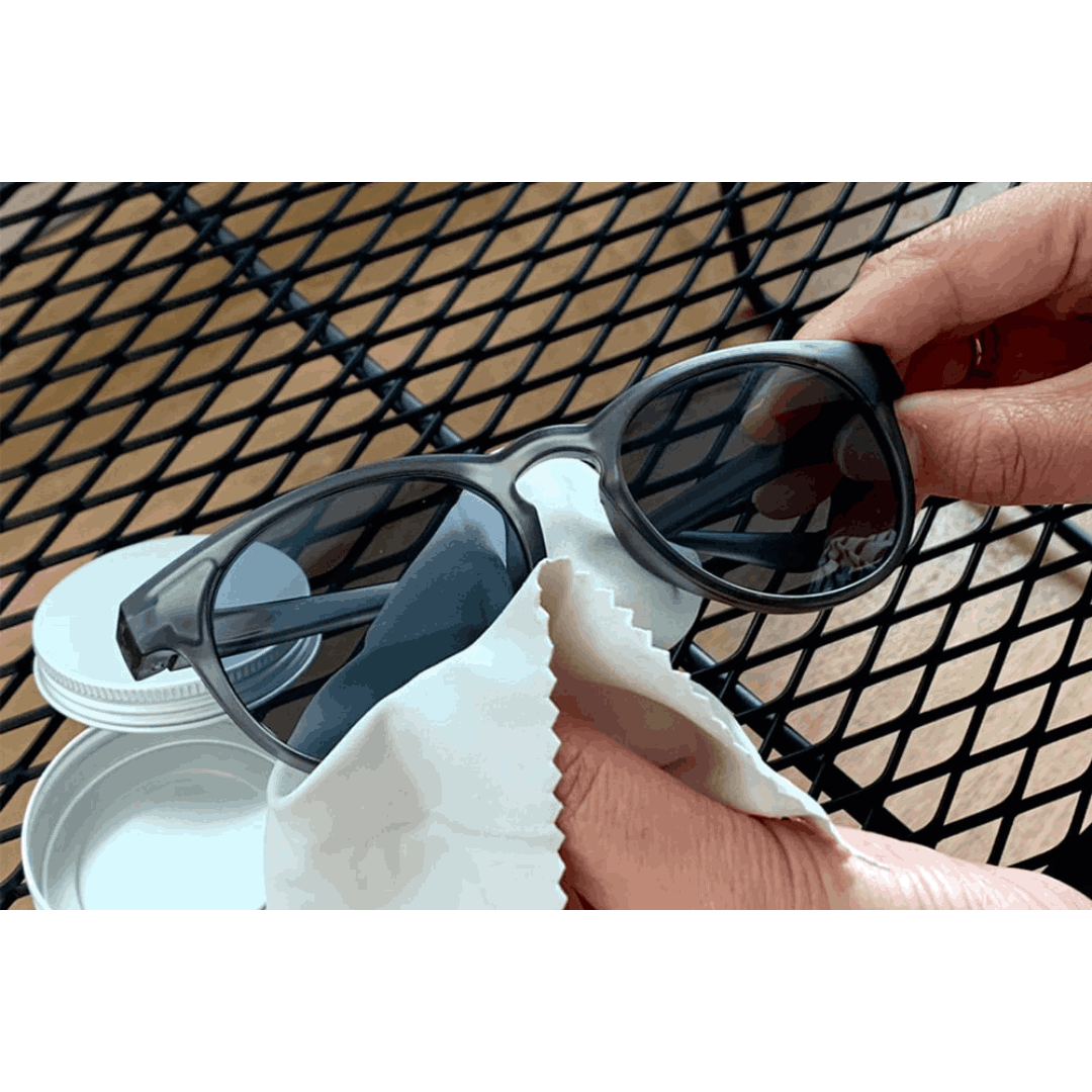 その後、レンズの表裏に息をハァーと吹きかけてから、本品で5~10回程よく拭いてください。
