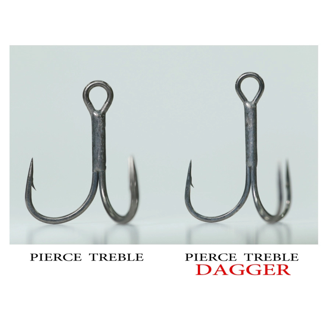ピアストレブルダガーはただダウンサイジングするのでは無く、 ややロングシャンク化する事でフッキングパワーを向上させると同時に、 ショートバイトを絡め取りやすいセッティングへと最適化